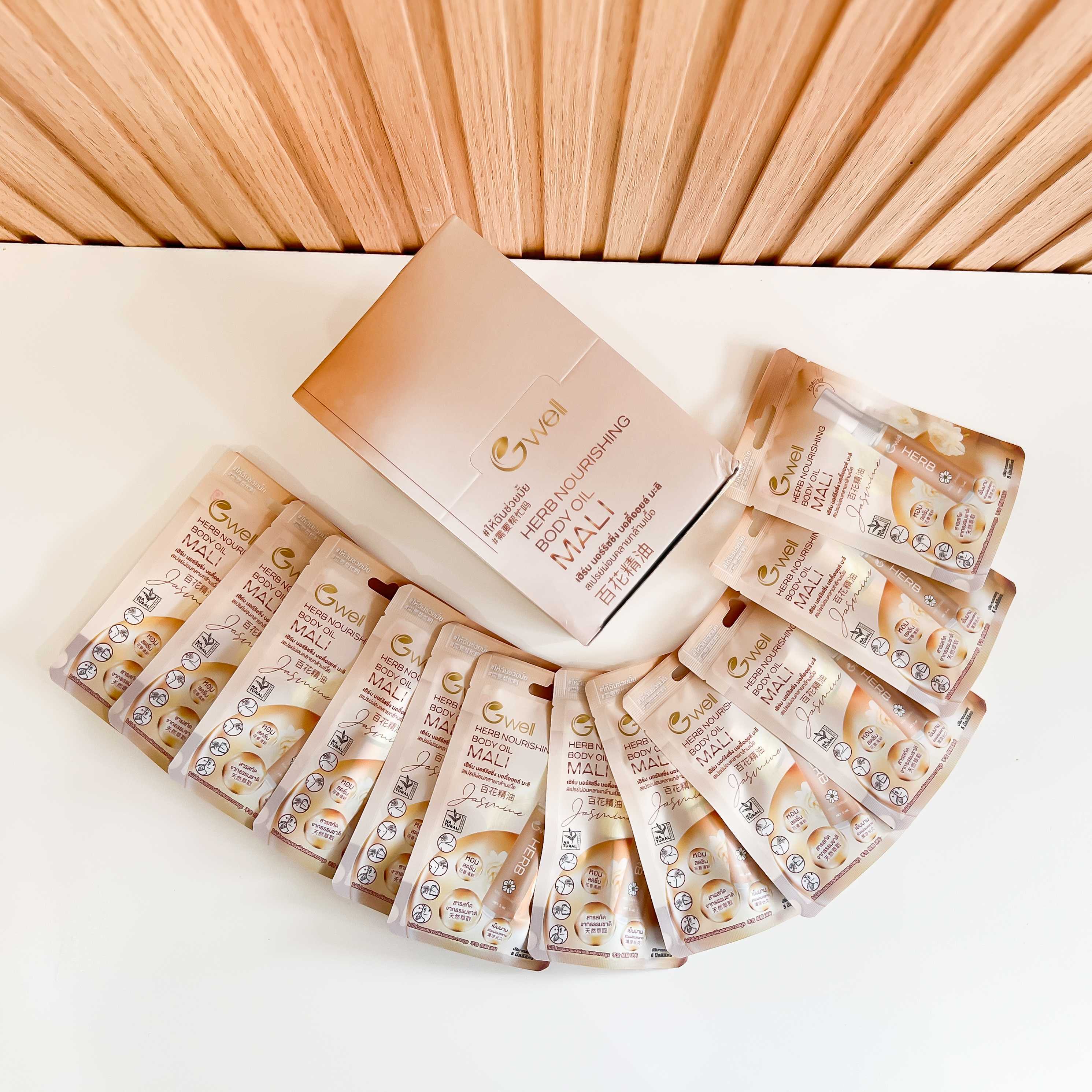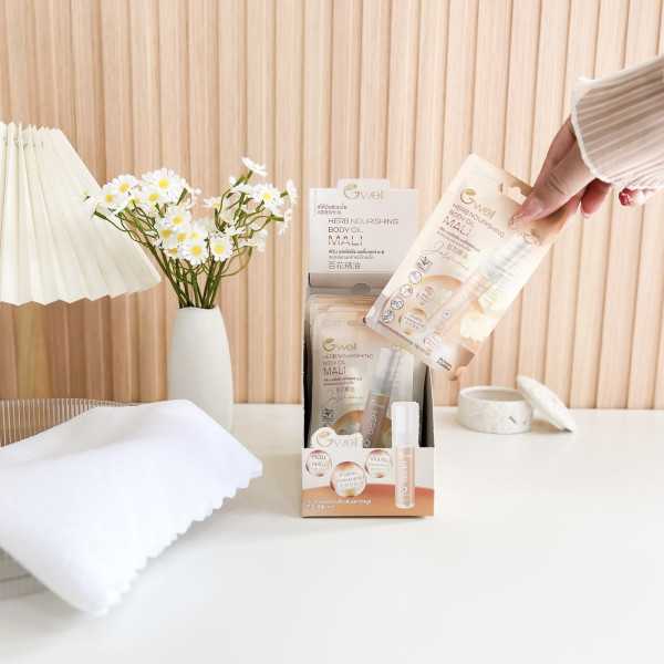 จีเวล เฮิร์บ นอร์ริชชิ่ง บอดี้ออยด์ มะลิ : สเปรย์สารสกัดสมุนไพรไทย เช่น มะลิ ด้วยกลิ่นหอม และสูตรเฉพาะที่ผ่อนคลาย มาในรูปแบบหลอดที่พกพาสะดวกสำหรับผู้ที่ต้องการ บรรเทาอาการปวด ได้ทุกที่ทุกเวลาบรรเทาอาการปวดเมื่อย ทาซ้ำได้บ่อยตามต้องการ ไม่เหนียวเหนอะหนะ มีกลิ่นหอมผ่อนคลายและบำรุงผิวกาย ปราศจากพิมเสน และการบูร